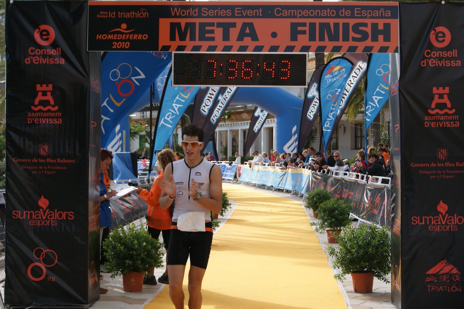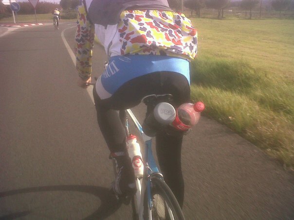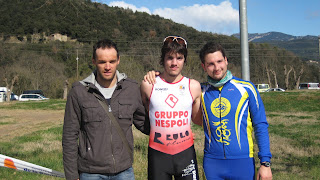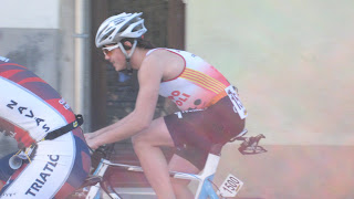 Como el suelo ya estaba más seco, decidí controlarle un poco, no dejarle ir demasiado... así que conservando las distancias, veia como se me mantenia a casi 2 minutos hasta boxes. Ya no me bastaba solo con terminar, queria ganar... así que con el miedo de lo que pudiera correr, paso de canviarme los calcetines mojados, y hago una rápida T2. Marco en la bici 3h 38'.