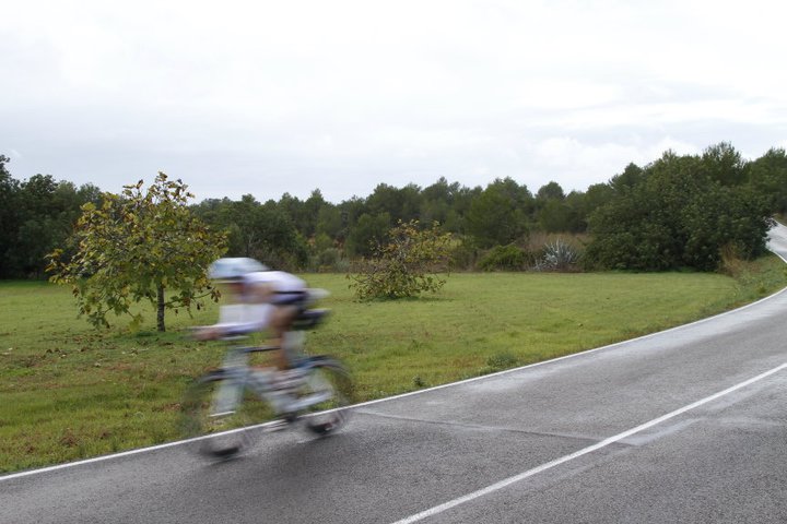 Me monto a la cabra, y contra el viento me dirijo hacia el cruce de Cala d'Hort. 10 km's de falso llano, donde acoplado la velocidad no ascendia de 23.5 km/h... asi que decido conservar ante todo.