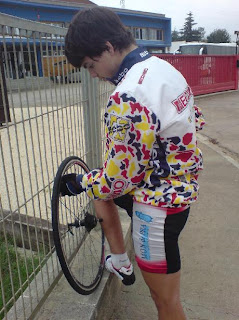 Por la mañana saliamos con Triadú dispuestos a hacer un buen entreno de bici, pero solo llevavamos 6 km cuando pinché! Eso ya es mala leche, pero para rematarlo la camara de repuesto tambien estava agujereada!! En fin, espero que mañana no me pase lo mismo, y si puede ser que no sea al mismo lugar!! La Klein X carbon ya está al máximo para mañana!