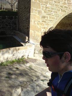 Estava corriendo tan traquilo, cuando de repente oigo algo raro detrás de mi. Me giro, y veo tres San Bernardos, gigantes, corriendo a toda leche para pillarme. Me aterrorizo, y no me lo pienso dos veces en pisar el acelerador a fondo. Después de casi un quilómetro y medio de subida, corriendo a ritmo de 3:15 m al km de media, los perros se rinden! Ya era hora... Y yo que me pensava que eran pacíficos los San Bernardos, que errado iva!